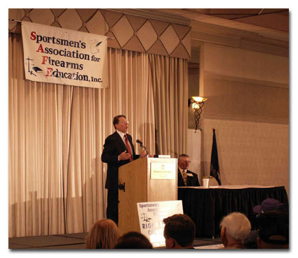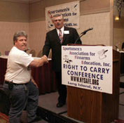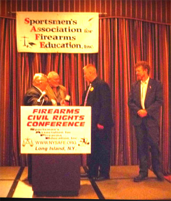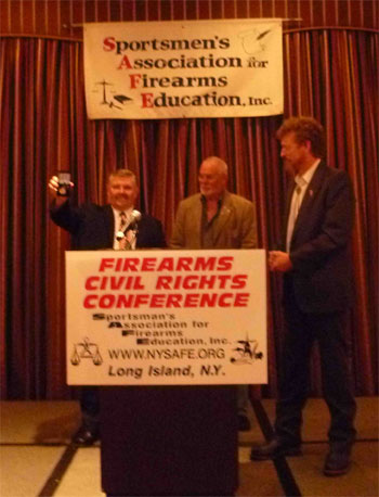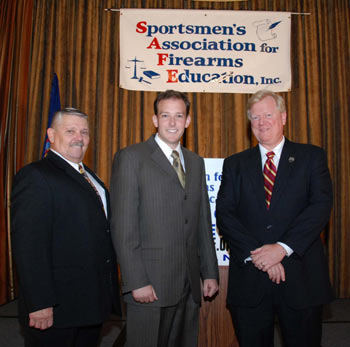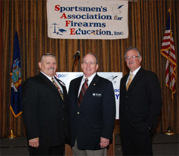 Stephen Masterocco (center), member of SAFE and creator and Donor of an Eagle Portrait given to SAFE as a gift to David Keene President NRA (left) and John Cushman
